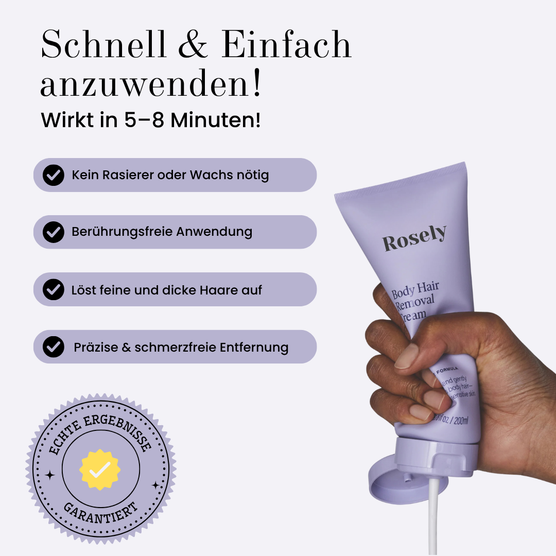 Sollten Sie Unbehagen verspüren, entfernen Sie die Creme sofort mit einem feuchten Tuch und spülen Sie gründlich mit kaltem Wasser nach. Führen Sie vor der ersten Anwendung immer einen Hautverträglichkeitstest durch.