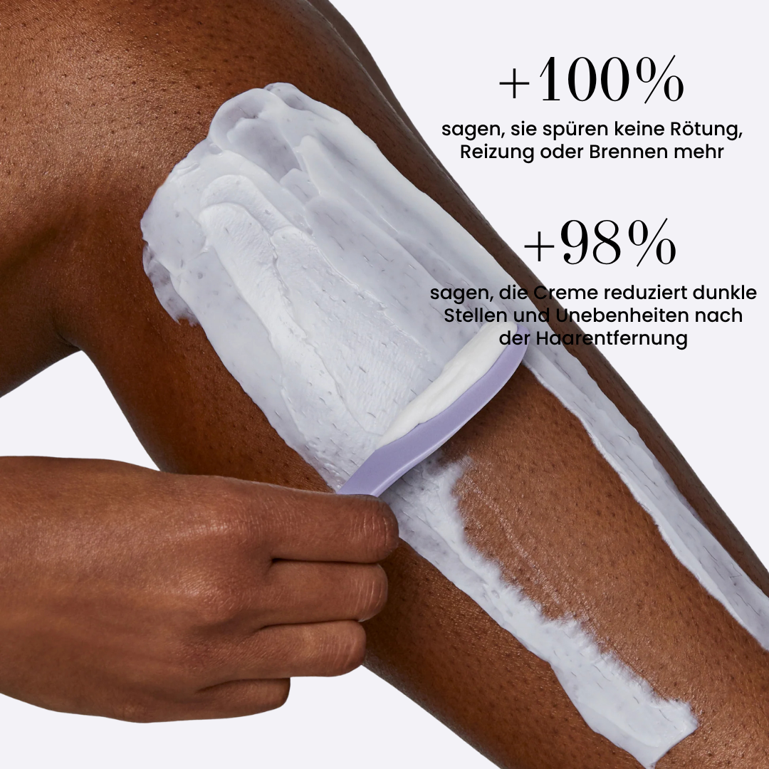 Rasieren kann zu Hautreizungen, verstopften Poren und lästigen dunklen Stoppeln führen. Unsere schmerzfreie Enthaarungscreme entfernt Haare sanft und ohne Reibung. Für glatte, reine und makellose Haut.