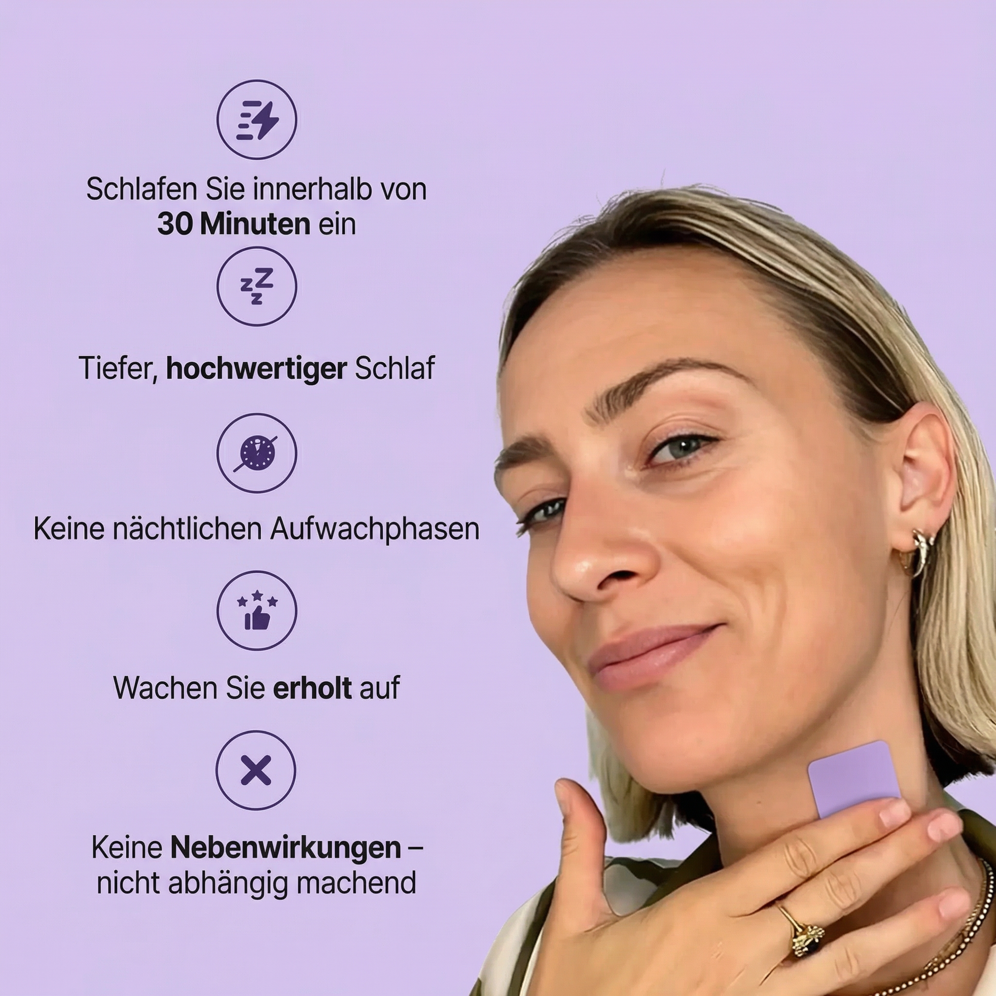 Die Rosely Pflaster enthalten keine starken Beruhigungsmittel. Sie sollten Sie daher nicht daran hindern, aufzuwachen, wenn es nötig ist. Sie unterstützen Entspannung und Schlafqualität, ohne morgendliche Benommenheit zu verursachen.