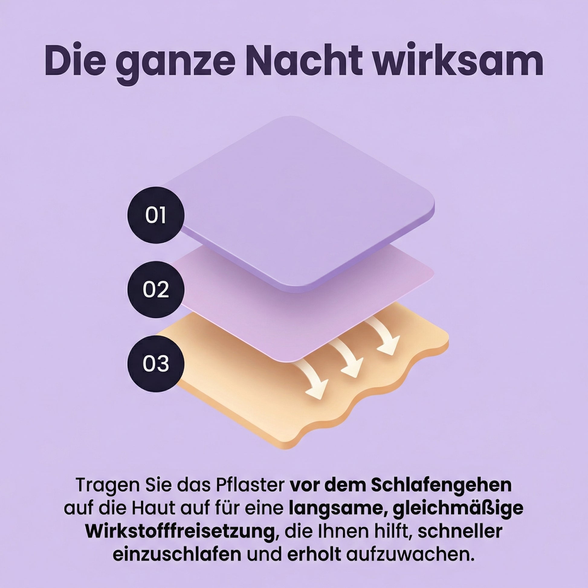 - Kleben Sie das Pflaster etwa eine Stunde vor dem Schlafengehen auf eine gut durchblutete Stelle, z. B. das Handgelenk oder den Oberarm.